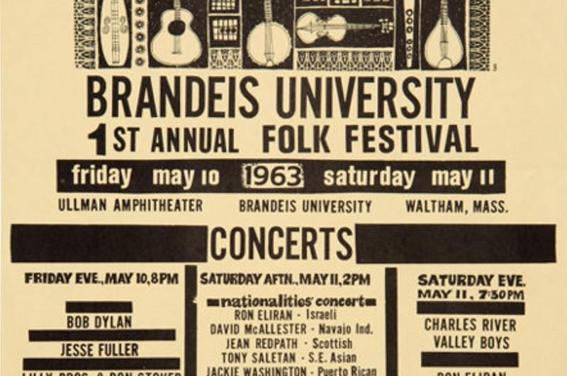 In May 1963, Bob Dylan travelled to Massachusetts for a small folk festival at Brandeis University. Just a few weeks later, his second album The Freewheelin’ will be released and he’ll rarely play such a modest event again.