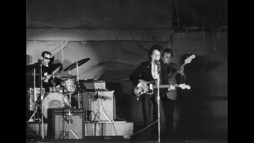 Can you think of another headline act who was heckled and jeered by their own fans just before playing their biggest hit? Such unique mayhem was a result of Dylan – to quote one enlightened audience member interview by Dylan’s own film crew – “just doing what he wants to do.” And after someone in the crowd succinctly summed up their sense of betrayal by his turn to rock, all Dylan really wanted to do was respond with a blistering performance of Like a Rolling Stone.