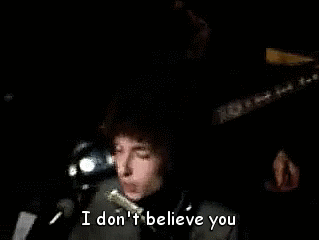 With our benefit of perfect hindsight, it’s easy to look down on those who booed and jeered the future, like the Parisians who objected to the atonal rattles of Stravinsky’s Rite of Spring. But it’s worth trying to revisit that other country of the past and understand its differences. Some of those present at Dylan’s 1966 UK concerts may not have been familiar with his most recent records. At a time when cultural proliferation was dependent on the sluggish spread of expensive physical media, it’s likely than some fans were just discovering Dylan’s earlier sides. The Times They Are a-Changin’ didn’t make the UK album charts until mid-1964 – more than a year after its release. That record’s title track was a top ten single hit in April 1965. So, it’s not too surprising that many who turned up to see him in concert were expecting the somber, protesting Dylan.