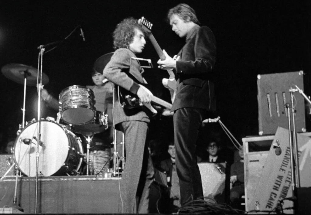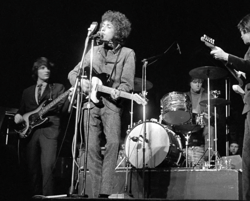 In his riotous (if unimaginatively titled) autobiography Life, Keith Richards mentions how when his guitar idol John Lee Hooker first started playing with rock musicians, he split his set into acoustic and electric halves. And guess what? The crowd booed when he plugged in. Dylan’s first paid gig was a two-week support slot for Hooker at Gerde’s Folk City in New York, so he likely paid close attention to the bluesman’s subsequent doings. On his 1966 world tour, Dylan once more borrowed from the past and elevated it to new heights.