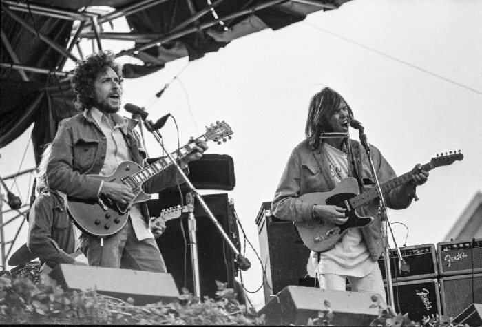 Overall, the combined talents of Young, Dylan, The Band and The Stray Gators delivered an eclectic, energetic, obviously under-rehearsed and, at times, chaotic set that proved to be an apt ending to the day’s entertainment. Earlier highlights had come from The Doobie Brothers, in one of their last shows before Michael McDonald join the band, and Joan Baez, who included a couple of Dylan songs – I Shall Be Released and A Hard Rain’s A-Gonna Fall – in her set, as well as The Band’s The Night They Drove Old Dixie Down.